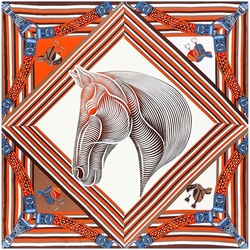 Estilo Retro Europeu 130cm Quadrado Grande Lenço de Seda-como Geométrico Listrado Cabeça De Cavalo Sarja Decorativa Capuz Xale
