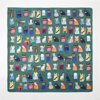 ผ้าพันคอไหมสี่เหลี่ยมขนาดใหญ่90X90ซม.,ผ้าพันคอไหมเทียมฮิญาบผ้าฮิญาบการเดินทางฤดูใบไม้ผลิพิมพ์ลายการ์ตูนแมว
